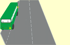 Try to give way to buses if you can do so safely, especially when the driver signals to pull away from a bus stop. Look out for people getting off the bus or running to catch it, because they may cross the road without looking. Don't accelerate to get past the bus, and don't flash your lights, as this could mislead other road users.